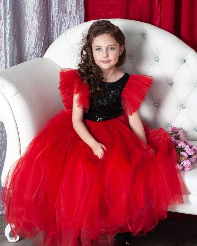 Beautiful Red Soft Net Kids Gown