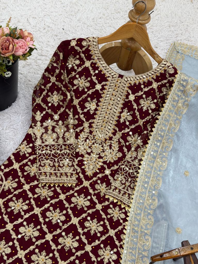 Designer Party Wear Look Top-Plazzo and Dupatta With Heavy Embroidery Work 3 piece