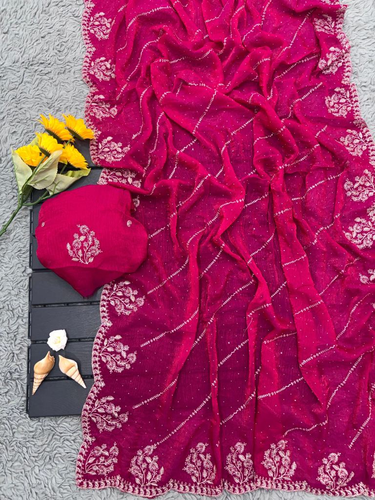 Elegant Embroidered Chiffon Saree sattin silk designer saree