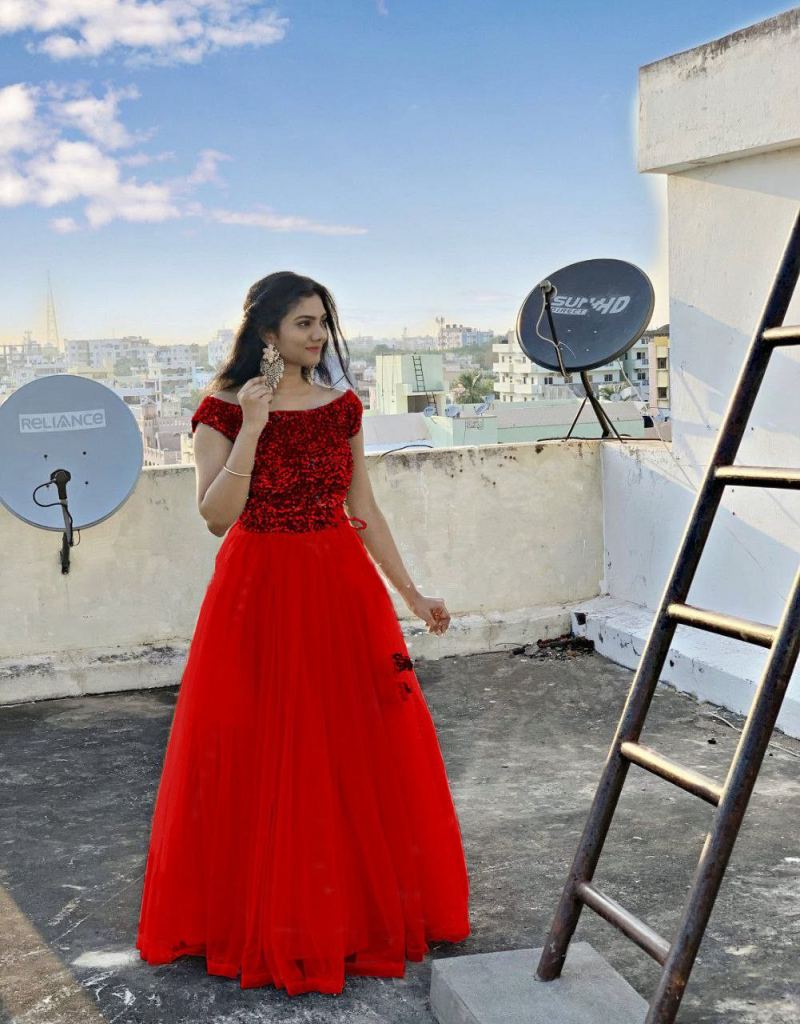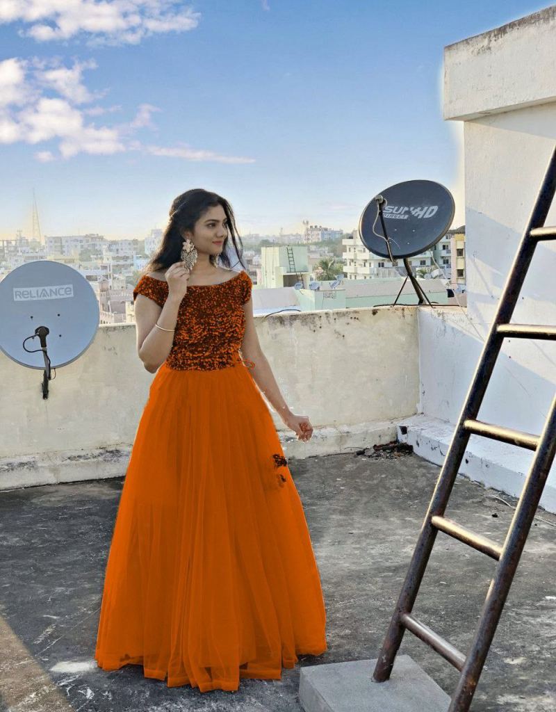 Gorgeous Soft Net Gown with Sequins & Fancy Back