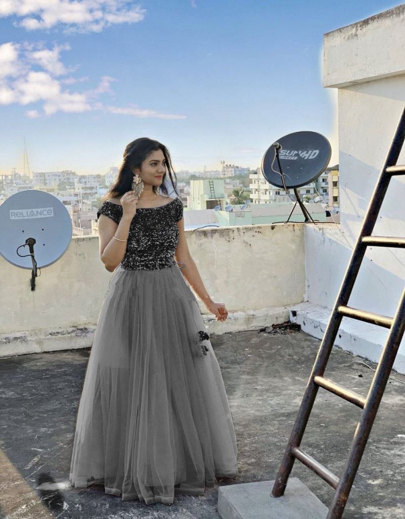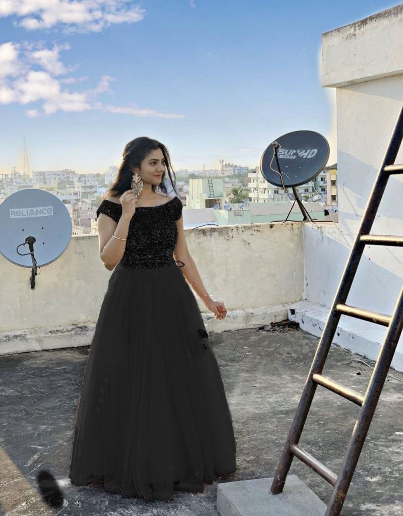 Gorgeous Soft Net Gown with Sequins & Fancy Back gown