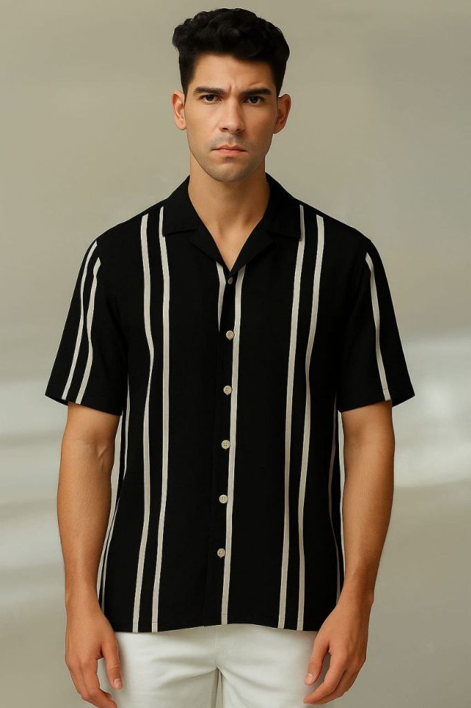 Mens Fancy Printed Cuban Collar Shirt Mens Shirt