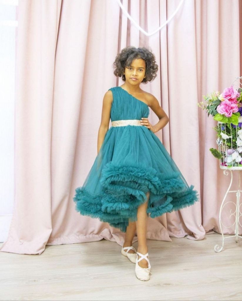 One Shoulder Frill Sparkle Kids Gown gown