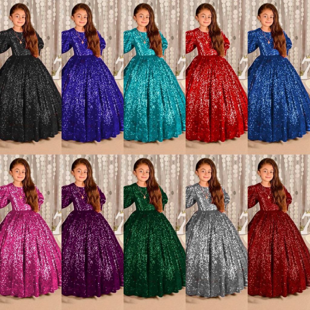 Sparkling Balloon Sleeve Kids Gown